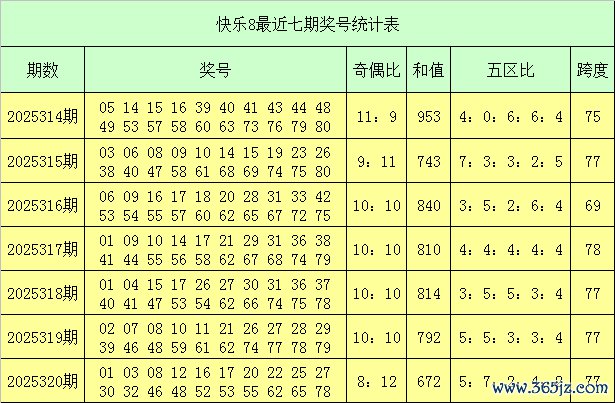 福彩欢乐8第2025320期开出奖号:01 03 08 12 16 17 20 22 25 27 30 32 46 48 52 53 55 62 65 78,其中奖号奇偶比为8:12,和值为672,跨度77,五区比为5:7:2:4:2。
